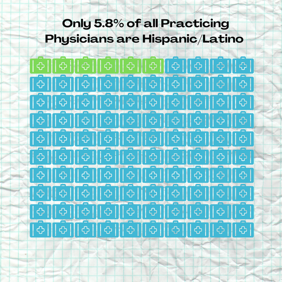 The answer like everything is complicated; but that's why we discuss so let's dive into it. Only 5.8% of practicing physicians are Hispanic/Latino and less than half of those physicians (36.7%) practice primary care. But the story of these low numbers begins with an application...